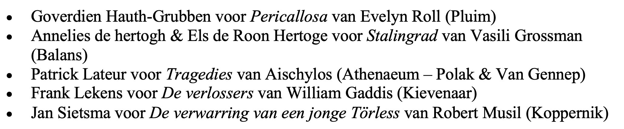 - Jan Sietsma voor De verwarring van een jonge Törless van Robert Musil (Koppernik)