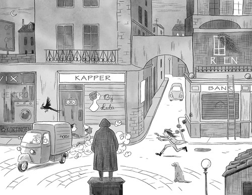 Maar wat visueel opvalt, naast de tekeningen, zijn – ik citeer de jury weer – ‘de ingenieus in de tekst verwerkte woordenboeklemma’s, waarbij de humor in het Nederlands steeds fier overeind blijft’. Samu gebruikt naast de simpele verdwenen woorden ook veel ingewikkelde woorden. Italiaanse kinderboekenschrijvers voelen de vrijheid heel volwassen woorden te gebruiken, signaleerden Manon Smits en Pieter van der Drift onlangs in een gesprek met ons voor de vólgende podcast. Veel meer dan hun Nederlandse collega’s. En inderdaad: we stuitten in De woordredders al op malefatte confessare, fantasticherie, dimostrare grande carattere e lealtà, inoppugnabile, incontrastabile forza d’animo, aristocratico, cospirazionista, entità, tattica di ignorarla, door Herber al even onverschrokken vertaald met wandaden opbiechten, overpeinzingen, karakter en toewijding tonen, onbetwistbare vastberadenheid, aristocratisch, complottheoreticus, entiteiten, negeertactiek - en die krijgen niet allemaal een woordenboeklemma.