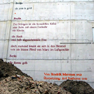 De Nederlandse ambassade in Berlijn, een schepping van Rem Koolhaas, heeft één grote blinde muur. Lieve Ursula had net een slopend schooljaar achter de rug en we stonden op het punt onze koffers te pakken om op vakantie te gaan. De telefoon ging. Een medewerkster van de Nederlandse ambassade in Berlijn. Of ik tijd had voor een vertaling van Hendrik Marsman. Voor op die blinde muur. ‘Niet doen!’ riep LU op de achtergrond. Om tijd te winnen en omdat enige ijdelheid mij niet vreemd is, vroeg ik of de naam van de vertaler ook op die muur kwam te staan. Dat sprak vanzelf. De deadline dan? ‘Ná de vakantie!’ riep LU getergd. Maar nee: het liefst zo snel mogelijk, eigenlijk vandaag nog, de ambassademedewerkster was zelf namelijk al bezig haar koffers te pakken en de zaak moest wel voor de vakantie in kannen en kruiken zijn. Het gedichtje was gelukkig heel kort, geschreven in een lapidaire telegramstijl à la August Stramm, een van de door Marsman bewonderde expressionistische Duitse dichters. Marsmans expressionisme is minder radicaal en ook minder geëxalteerd. Anders dan zijn Duitse voorganger, vlecht hij af en toe nog een enkel rijm in en laat hij de traditionele grammatica en zinsbouw grotendeels intact¹:
