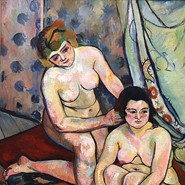 Er is nog een reden om voor ‘voorspel’ te kiezen. De derde betekenis van ‘Vorspiel’ is volgens Duden: ‘dem eigentlichen Geschlechtsakt vorausgehender, ihn vorbereitender Austausch von Zärtlichkeiten’ (wat een omschrijving – kom daar eens om bij Van Dale!).3 Aan zinnelijkheid (en erotiek - lees bijvoorbeeld hoofdstuk 5 – ‘Ewige Jugend’, helaas nog niet vertaald!) geen gebrek in dit werk van Tawada. Aan het begin van hoofdstuk 2 vinden we de aanduiding van een intieme douchescène: zoals op het schilderij Les Baigneuses van Suzanne Valadon ‘troost Elsa mijn haren van achteren’. En dan volgt een woordspeling waarin Tawada grossiert: ‘Wir stehen wie gemalt.’ ‘wie gemalt’ is een zegswijze voor ‘bijzonder mooi’, maar hier natuurlijk ook een verwijzing naar het schilderij. Een greep uit de oplossingen die ter tafel lagen: ‘We staan er geschilderd op’, ‘We staan er geschilderd bij’, ‘We staan er beelderig op’. Intussen blijft de zinnelijkheid aanwezig: Elsa zit – nog steeds ongekleed – op het balkon en droogt haar ‘Kopfgewächse’. Alle vertalersogen zijn gericht op de schrijfster: wat moeten we ons hierbij voorstellen? Het antwoord is ontnuchterend: ‘Ik had daar geen bepaald beeld bij.’ Gewoon ‘Haare, die aus dem Kopf wachsen’. Dus: ‘hoofdbegroeiing’, ‘hoofdgewas’, ‘haardos’? Een naakte vrouw op een balkon, boven een rivier, die neuriet (hier weliswaar een nummer van de Stones) en iets met haar haar doet: dan is de associatie met de legendarische riviernimf die de auteur even later legt niet vergezocht: ‘Een veerman in een blauwgeruite / kiel zucht en blijft staan onder een / Loreley die aan de / Elbe is beland.’4