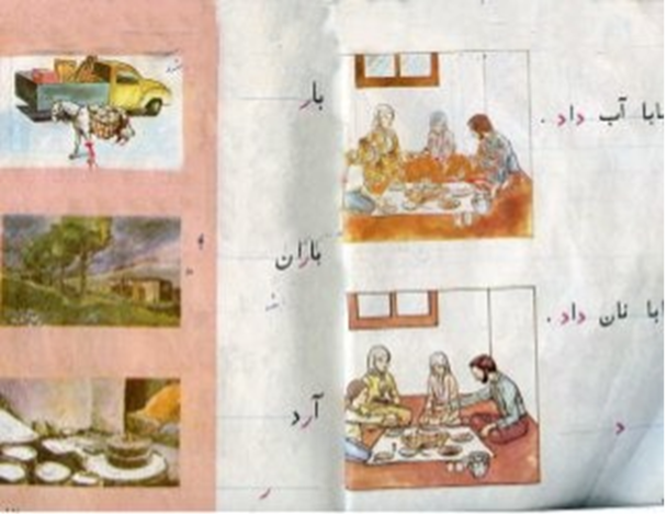 Perzische leesmethode: eerste woord: water – eerste zin: vader gaf water )