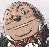 However, the egg only got larger and larger, and more and more human: when she had come within a few yards of it, she saw that it had eyes and a nose and mouth; and when she had come close to it, she saw clearly that it was humpty dumpty himself. “It can’t be anybody else!” she said to herself. “I’m as certain of it, as if his name were written all over his face.”